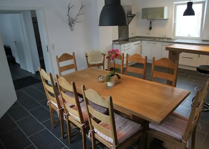 Ferienhaus Am Kreuzberg - Nurburgring는 편안한 시간을 보내기 위한 작은 부엌, 식당, 업무용 책상이 마련돤 객실을 제공합니다. 이 숙소에는 2개의 욕실과 오븐, 유리 제품, 주방용품이 있는 부엌이 마련되어 있습니다. Ferienhaus Am Kreuzberg - Nurburgring에는 4 침실이 있습니다. 롤인 샤워가, 워크인 샤워가, 욕조가 있는 욕실도 제공됩니다.